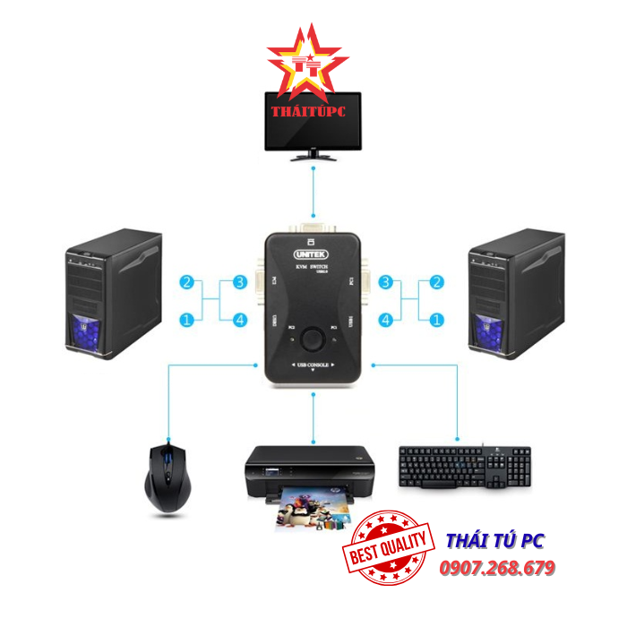 Bộ Chia Data KVM USB 2 In-1 Out UNITEK U 8709 ABK