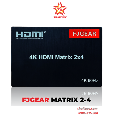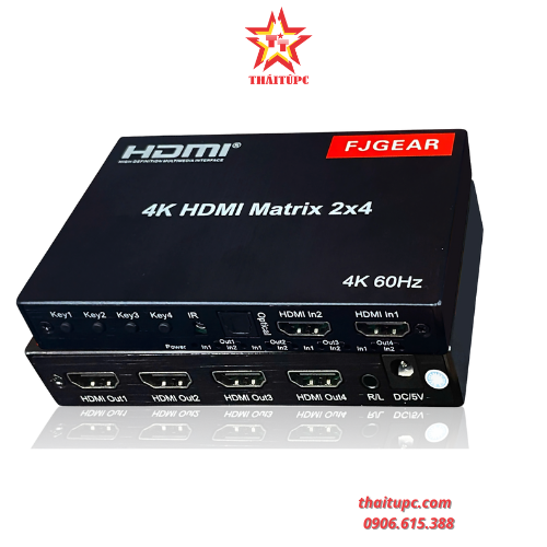Bộ chuyển đổi HDMI matrix 2-4 4K@60Hz Optical+Audio+Remote+Nguồn FJGEAR