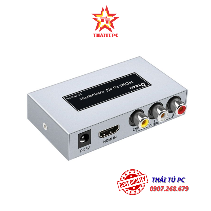 HDMI sang AV DTECH DT-7019A là bộ chuyển đổi tín hiệu cho phép bạn kết nối một thiết bị có đầu ra HDMI như đầu đĩa Blu-ray, bộ giải mã truyền hình kỹ thuật số, laptop, pc, đầu ghi … với thiết bị có đầu vào AV như TV, loa hoặc một bộ khuếch đại