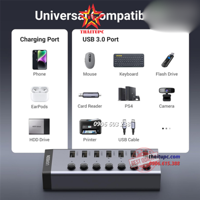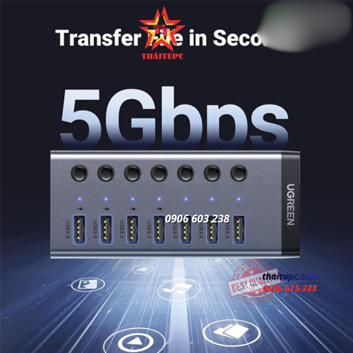 Hub USB 3.0 Ugreen 90307 có nguồn hỗ trợ là phụ kiện cao cấp giúp chia cổng usb trên máy tính, laptop… của bạn thêm 7 cổng USB 3.0 với tốc độ truy xuất dữ liệu lên đến 5Gbps, với nguồn cấp phụ 12V giúp thiết bị có khả năng sao chép, truyền tải tập tin số dung lượng lớn ổn định và nhanh chóng. Với nhiều lớp bảo vệ quá dòng, quá áp, chống ngắt đột ngột… Ugreen 30778 thật sự là một thiết bị hoàn hảo cho mọi nhu cầu mở rộng kết nối USB 3.0 của bạn.