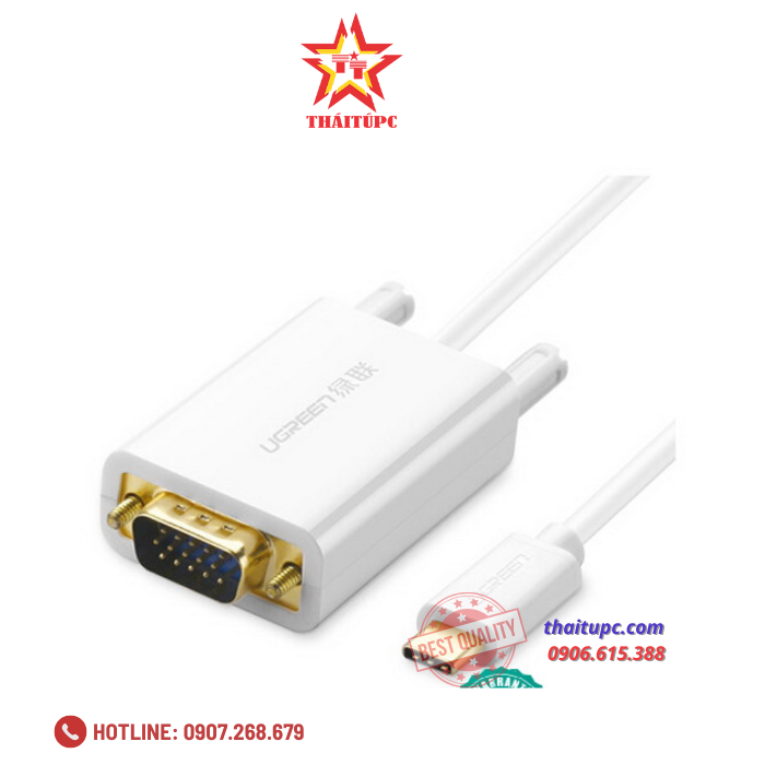 - Cáp chuyển đổi USB-C sang VGAdài 1,5m Ugreen 30842 được thiết kế để kết nối các máy tính phát hành mới như 2015 MacBook, Macbook air...có chuẩn USB Type-C với một màn hình hiển thị, hoặc máy chiếu với giao diện VGA độ phân giải lên đến 1080p.