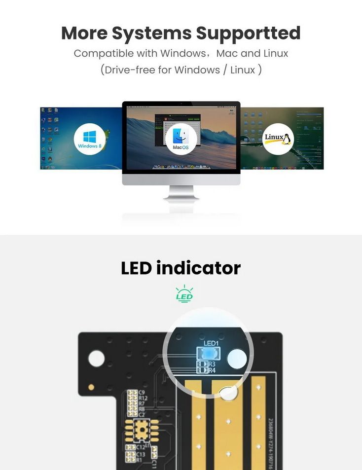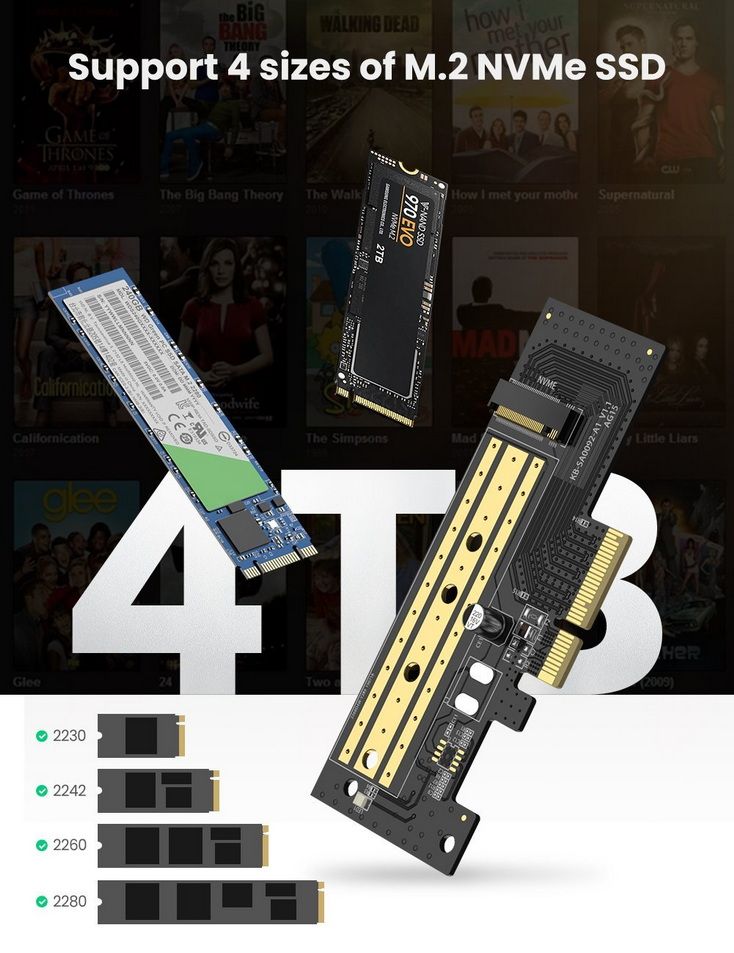 Được bảo vệ nhiều lớp: như quá dòngm quá áp, ngắn mạch. bảo vệ EMI (Nhiễu điện từ).Card PCIe Ugreen 70503 thiết kế vừa vặn mọi kích thước của ổ cứng 2230, 2242, 2260, 2280. Tương thích với hệ điều hành Windows/ Linux.