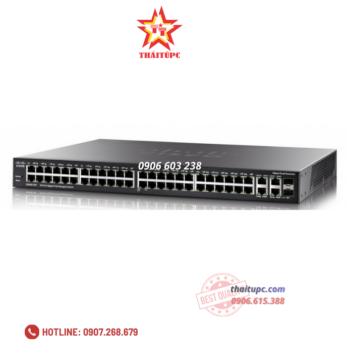 48-port PoE+ Gigabit + 2-port Combo (RJ-45 + SFP). (Công suất tối đa mỗi port 30W, Công suất tối đa switch 375W);