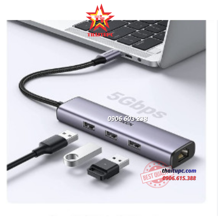 Hub chia USB Type-C to 3 cổng USB 3.0 Type-A kèm Lan Gigabit, vỏ nhôm chính hãng Ugreen 60600