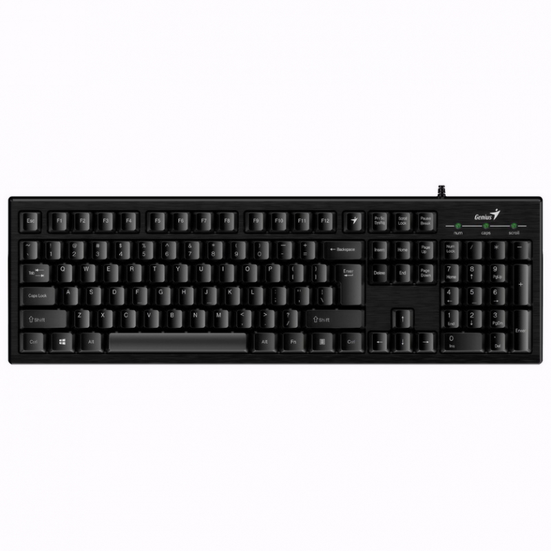 Bàn Phím Có Dây Genius KB-117 mang thiết kế fullsize lên tới 105 phím. Mặt trước của bàn phím được gia công từ chất liệu nhựa nhám đem vỏ bàn phím xước ,cảm giác sờ rất mịn ở đầu ngón tay. Các phím có độ sâu khoảng 1.6mm đạt chuẩn không bị quá nông hoặc quá cao giúp người dùng lướt nhanh khi đánh văn bản.