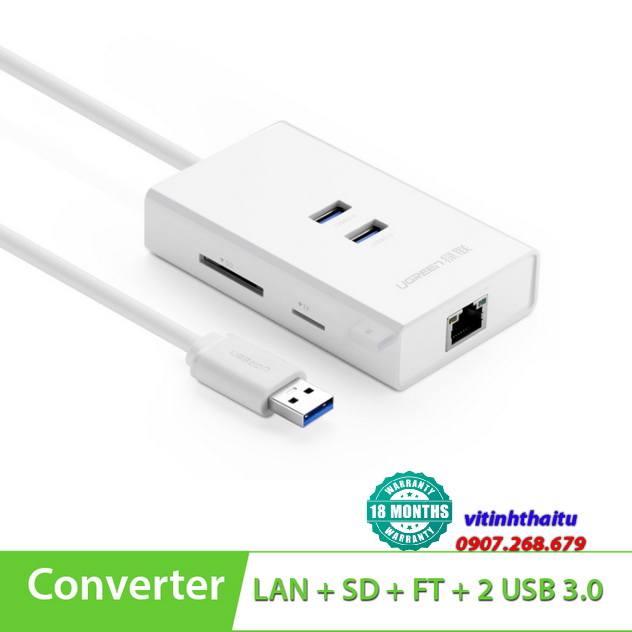 Bộ chia cổng USB 3.0 ra 2 cổng USB - 1 Lan Gigabit USB 3.0 + đầu đọc SD/TF Ugreen 20248 cao cấp