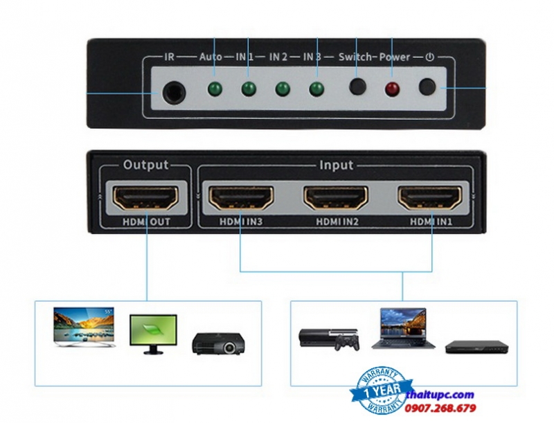 Hỗ trợ chia tín hiệu từ 3 đầu phát ra 1 màn hình hiện thị