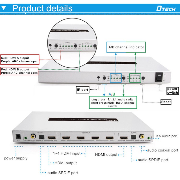 Asia SWITCH HDMI 4-2 + AUDIO DTECH (DT-7442)