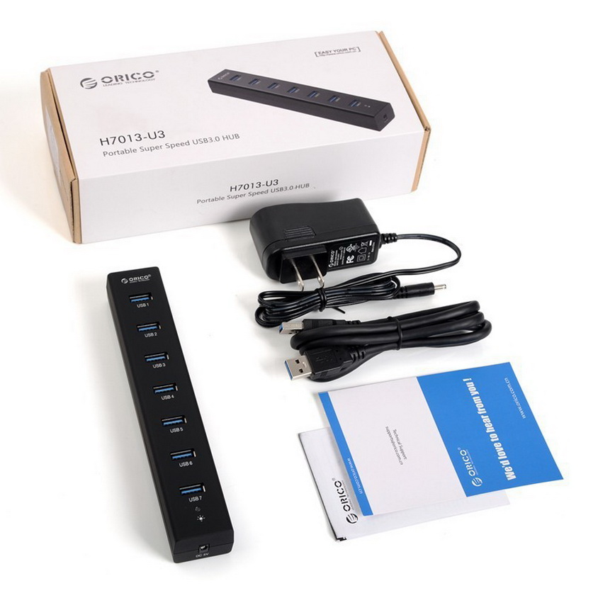 1. Hub ORICO H7013 7 cổng USB 3.0 với adapter rời 5V2A ổn định và bền bỉ.