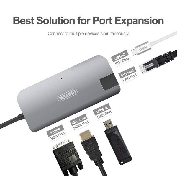 Bộ chia/ Hub Type-C -> HDMI +VGA+LAN Unitek Y-DK 09016 GY