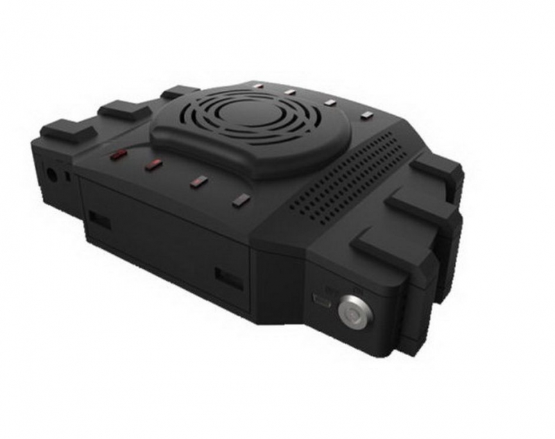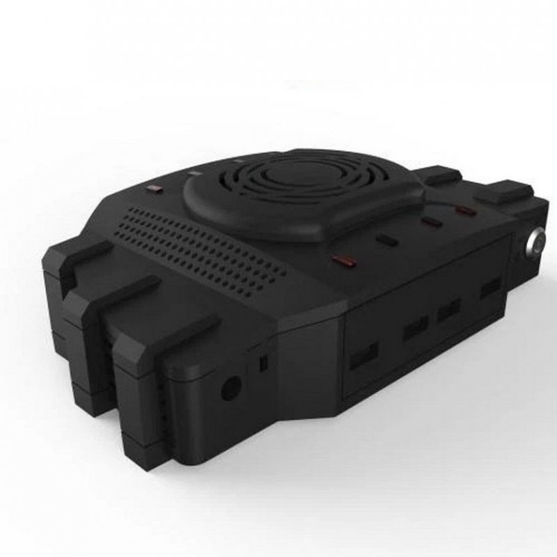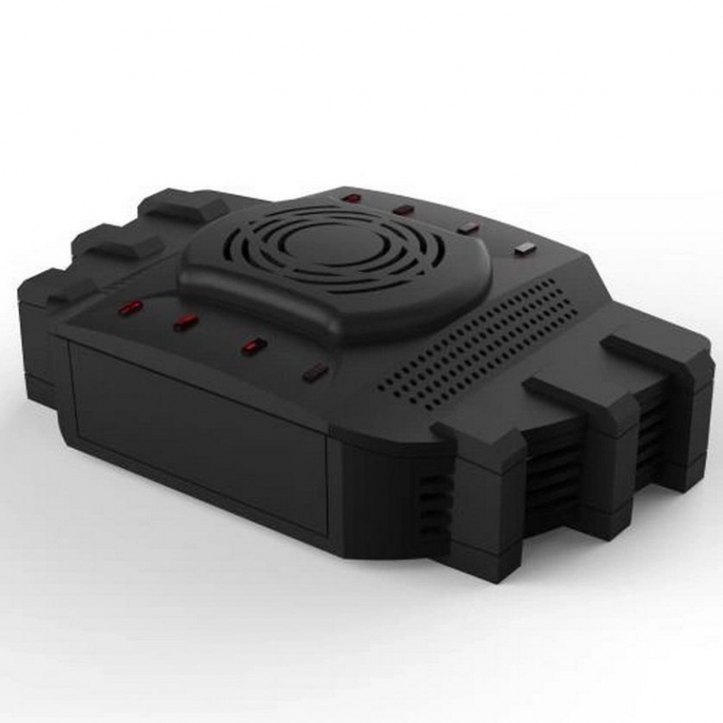 Mặt trên của hộp trung tâm bố trí loa 2 bên, chính giữa là quạt tản nhiệt rất lớn giúp thiết bị có thể hoạt động ổn định liên tục trong suốt thời gian dài. Cạnh trái phải được thiết kế 2 quai nhựa trượt ra vào có lỗ để bắt vít trong trường hợp chúng ta muốn cố định hộp trung tâm tại một vị trí nhất định.