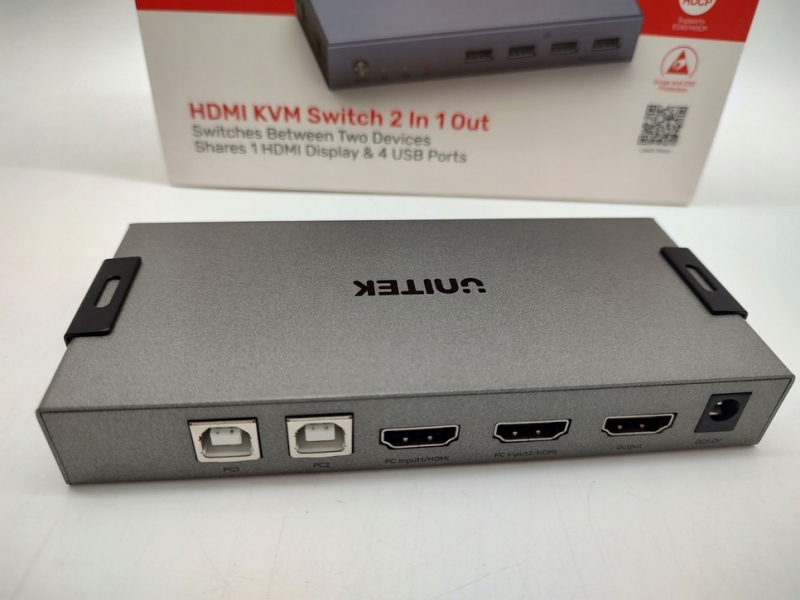 Unitek V307A là một bộ chuyển đổi HDMI KVM vào 2 ra 1 với sự đa dạng về các cổng kết nối, mang lại tính linh hoạt và tiện ích cho người dùng. Với 2 cổng vào HDMI và 2 cổng USB-B, sản phẩm này cho phép bạn kết nối đồng thời hai máy tính vào một màn hình duy nhất và kiểm soát chúng từ một bộ bàn phím và chuột.