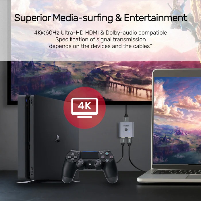 Sử dụng hai chiều, khả dụng để kết nối 2 nguồn và 1 màn hình HDMI hoặc 1 nguồn và 2 màn hình HDMI.