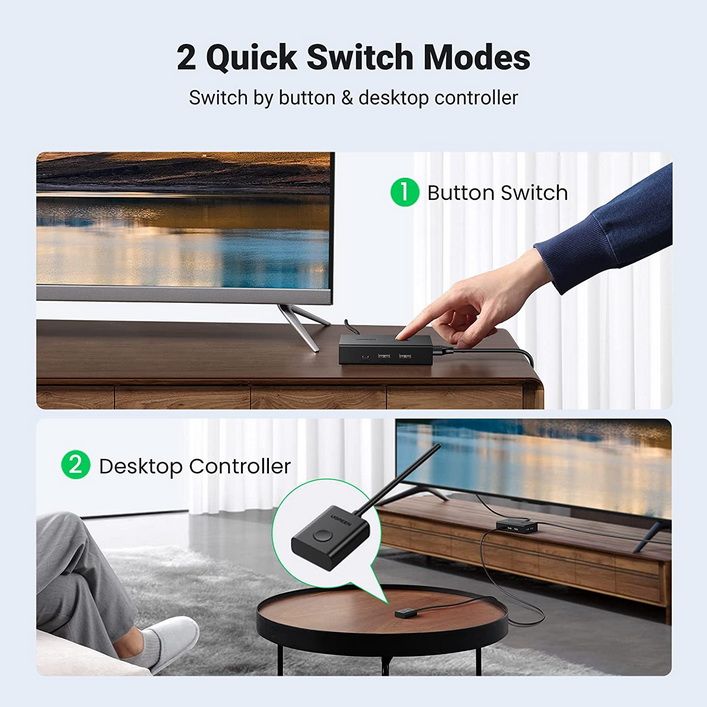 Hai chế độ chuyển đổi, sử dụng công tắc một nút hoặc bộ điều khiển máy tính để bàn, tự do chuyển đổi giữa 2 máy tính, tiết kiệm không gian trên máy tính để bàn của bạn và sử dụng màn hình, bàn phím và chuột yêu thích của bạn với cả hai máy tính, tăng năng suất của bạn trong văn phòng hoặc ở nhà.