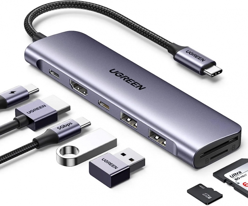 - Bộ chuyển Type C to HDMI 4k@30Hz + 2 x USB 3.0 + USB-C + SD&TF + PD Ugreen 15214 : thêm cổng USB-C trên máy tính xách tay của bạn với cổng dữ liệu USB-C & USB-A 5Gbps, HDMI 4K, Power Delivery 100W và đầu đọc thẻ SD/Micro SD.