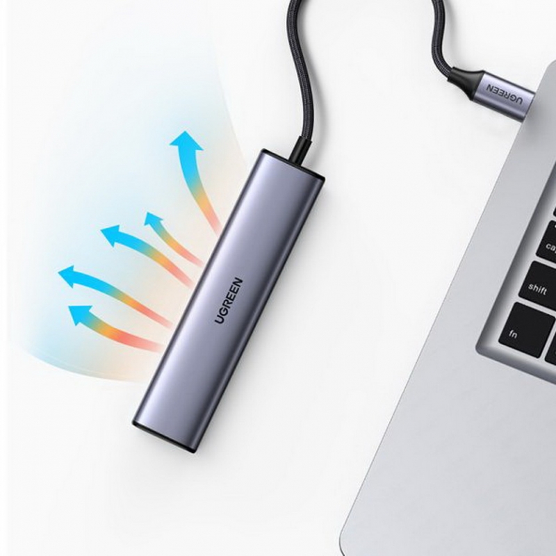 - Cáp chuyển USB-C 5 trong 1 Ugreen 20934 còn trang bị thêm 3 cổng USB 3.0 giúp bạn kết nối các thiết bị ngoại vi, và các thiết bị lưu trữ truyền tải dữ liệu tốc độ cao lên tới 5Gbps