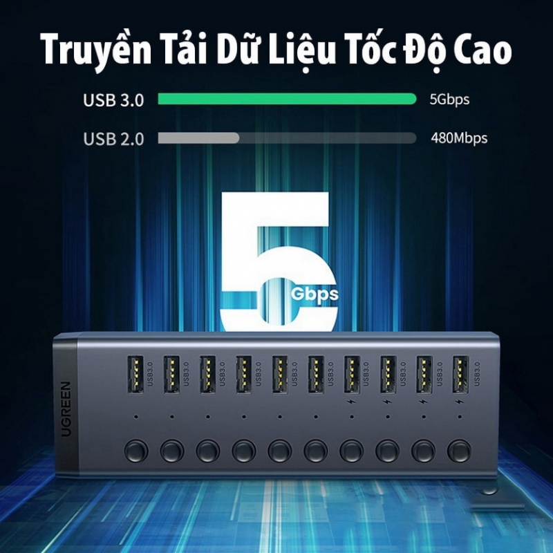 Hub 10 Cổng USB 3.0 Có Công Tắc Ugreen 30779