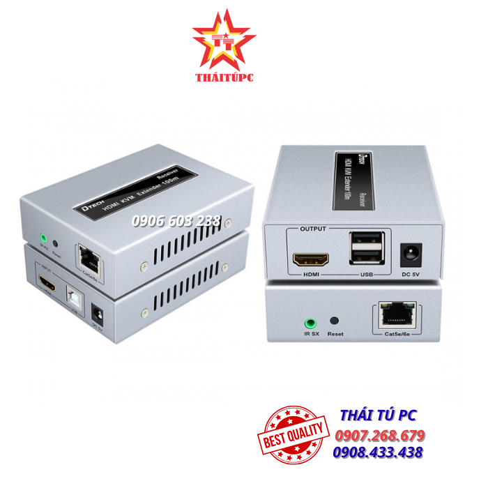 Bộ khuếch đại HDMI qua LAN 150m + USB KVM Dtech DT-7054A