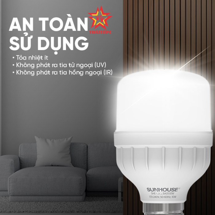 Sản phẩm đèn LED của SUNHOUSE không tỏa nhiệt, không phát ra tia tử ngoại, không bức xạ hồng ngoại, tuyệt đối an toàn khi sử dụng.