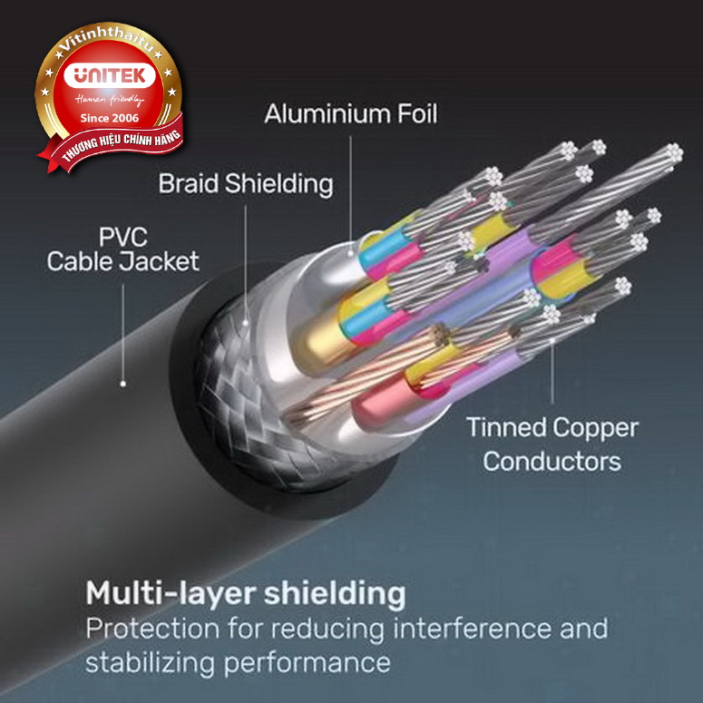 Thiết kế chuyên dụng, vỏ bọc dây dẫn được làm từ nhựa cao cấp cực chắc chắn, dây có màu đen. Lõi dây làm từ đồng nguyên chất có khả năng chống nhiễu tốt.