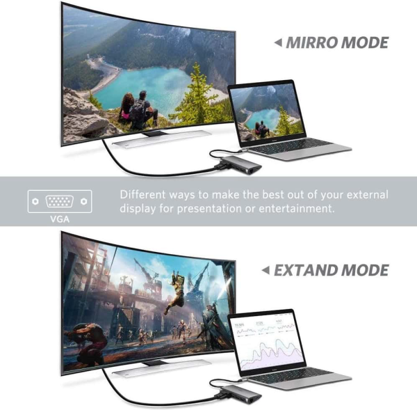 Hub USB type-C đa năng Ugreen 50539 được thiết kế để kết nối MacBook có cổng USB-C với màn hình hiển thị có cổng VGA với độ phân giải lên đến full HD 1080p