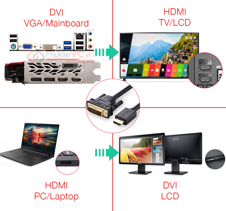 Cáp chuyển đổi HDMI to DVI 24+1 dài 5m HD106 chính hãng Ugreen 10137