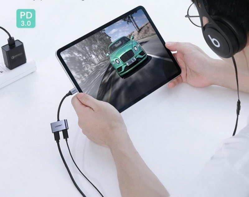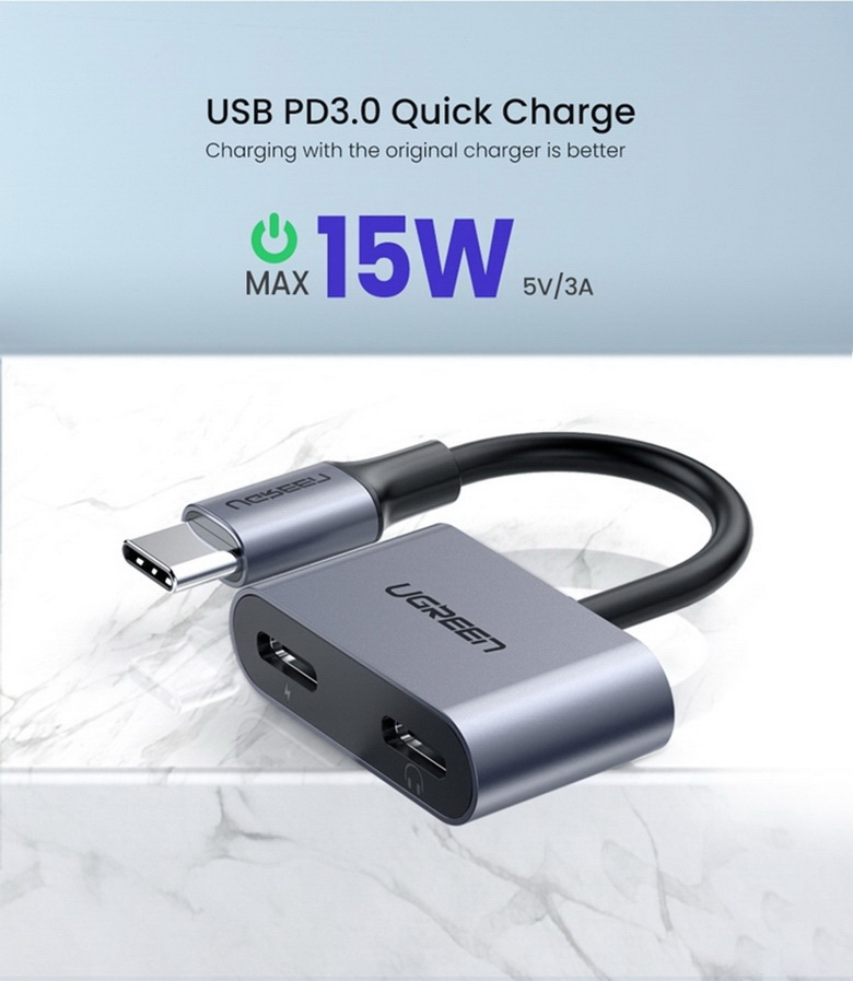 1. Bộ chuyển đổi USB C 2 TRONG 1 - UGREEN Bộ chuyển đổi USB 3.1 Loại C mở rộng hai cổng USB-C cho điện thoại của bạn chỉ bằng giao diện Loại C, một cổng để sạc nhanh và cổng còn lại cho đầu ra âm thanh nổi, cho phép bạn vừa sạc điện thoại vừa nghe đến âm nhạc.