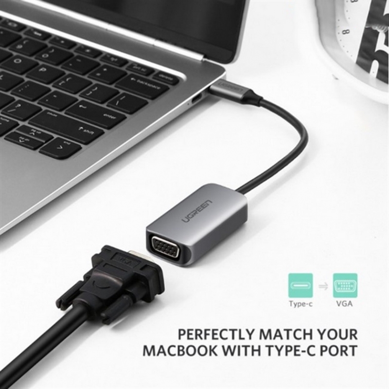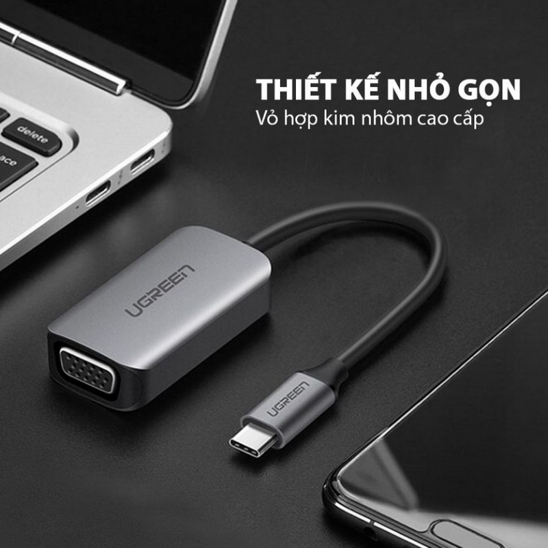 Cáp chuyển đổi USB-C sang VGA của Ugreen 50316 cho phép bạn kết nối liền mạch thiết bị USB-C (tương thích cổng Thunderbolt 3) như máy tính xách tay, điện thoại thông minh với màn hình VGA, TV hoặc máy chiếu.