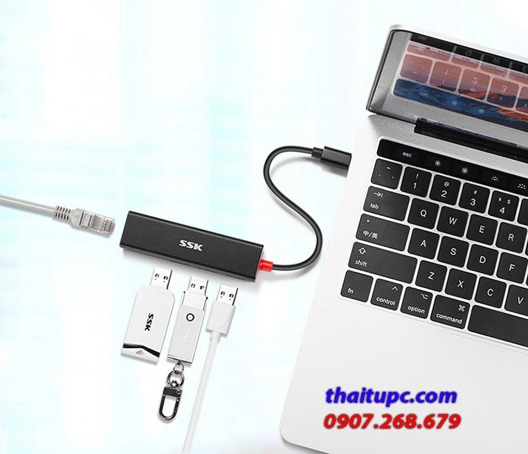 Cable Type-C ->Lan 10/100 +3 P USB(3.0) SSK SHU-C535 với Đầu vào : Type-C (5Gbps). Đầu ra 3 USB 3.0 (5Gbps), LAN (10/100M)