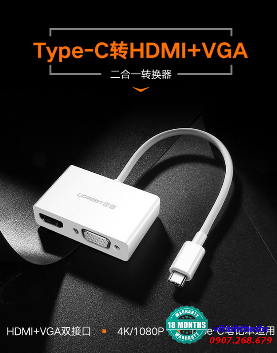 Cáp chuyển USB Type C To HDMI và VGA Chính hãng Ugreen 30843