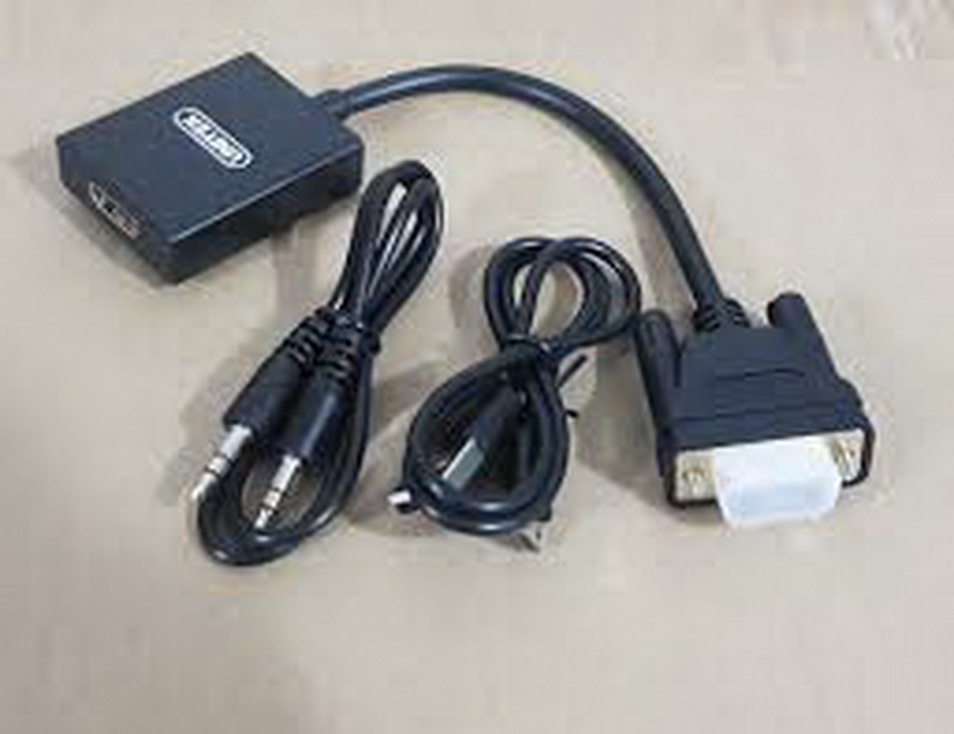 Một đầu ra VGA trên máy bàn hoặc laptop của bạn và cắm vào hộp chuyển đổi kèm theo cáp tiếng lấy từ audio out ở máy tính của bạn để tích hợp thêm âm thanh ra đầu ra HDMI. Khi đó bạn chỉ việc cắm cáp HDMI vào DHTV của bạn là có thể xem được hình và nghe được audio.