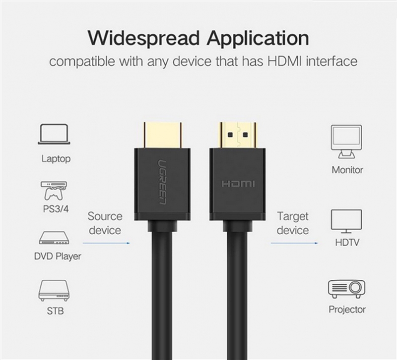 Cáp HDMI 1.4 dài 40m hỗ trợ Ethernet, 4K, 2K có Chip khuếch đại Ugreen 50765 Cáp HDMI cao cấp hỗ trợ Ethernet 4K 2K Ugreen 50765 hỗ trợ Ethernet giúp cung cấp giải pháp sử dụng một sợi cáp cho nhiều nhu cầu giải trí tại gia đình của bạn Ugreen 50765 dùng để kết nối với HDTV của bạn như đầu Blu-Ray Player, Tivi 3D, Roku, Boxee, Xbox360, PS3, Apple TV, Streaming Player, HD Box Cable, PC hoặc bất kỳ thiết bị HD có đầu ra HDMI giúp bạn trải nghiệm âm thanh chất lượng cao và video như một rạp hát ngay trong gia đình của bạn. Thông số kỹ thuật Cáp HDMI 1.4 dài 40m Hỗ trợ Ethernet, 4K, 2K có Chip khuếch đại Ugreen 50765 Hãng sản xuất: Ugreen Mã sản phẩm: 50765 Chiều dài: 40m Cáp HDMI 1.4 Ugreen có tốc độ truyền dữ liệu lên đến 10,2 Gb/s Độ phân giải hỗ trợ: 480/720/1080P/60Hz – 2K*4K/ 30Hz Hỗ trợ âm thanh cao cấp Dolby TrueHD và DTS-HD Master Audio ™, Hỗ trợ công nghệ HDCP compliant Ethernet Kênh HDMI – Thêm mạng tốc độ cao vào một liên kết HDMI, cho phép người dùng tận dụng đầy đủ các thiết bị IP-kích hoạt của họ mà không cần cáp Ethernet riêng biệt Cáp HDMI Ugreen Hỗ trợ độ phân giải 4K*2k, cho phép độ phân giải video vượt xa 1080p Tích hợp thêm tính năng Audio Return Channel Cho phép TV HDMI kết nối với một built-tuner để gửi dữ liệu âm thanh “ngược dòng” với một hệ thống âm thanh surround, loại bỏ sự cần thiết của một cáp âm thanh riêng biệt. Dây HDMI Ugreen Hỗ trợ 3D, Với giao thức đầu vào / đầu ra cho các định dạng video 3D lớn, tiện lợi cho việc chơi game 3D thực và các ứng dụng 3D rạp hát tại nhà. Cáp HDMI giúp bạn chia sẻ hình ảnh dễ dàng từ máy tính lên màn hình TV hoặc máy chiếu với độ phân giải sắc nét.
