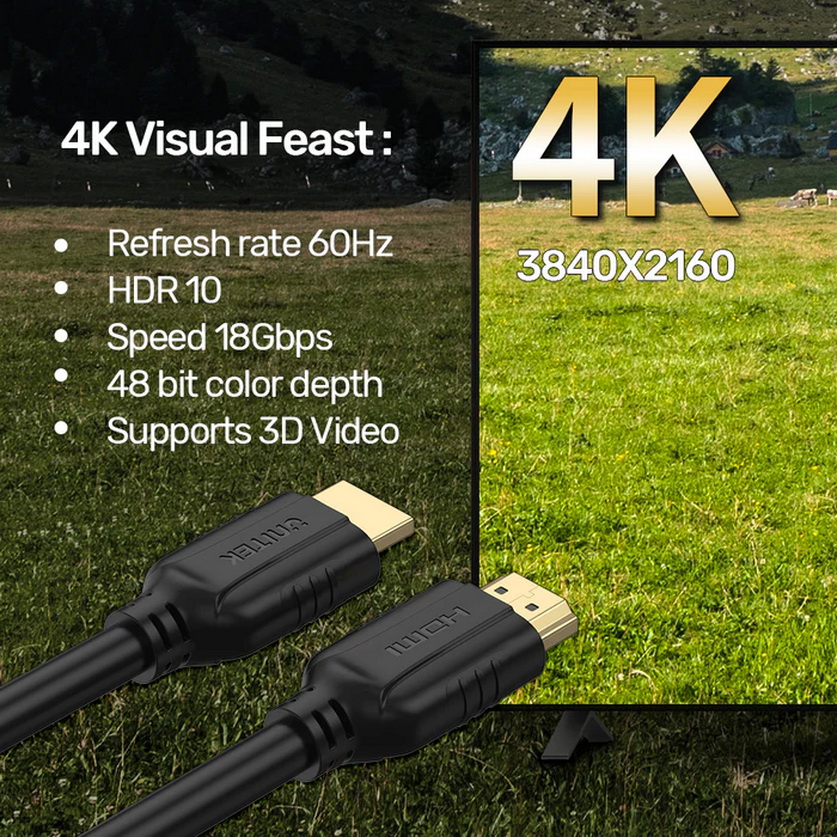 • Video HDR cáp HDMI 4K: UltraHD 4K mang đến cho bạn hình ảnh sắc nét hơn với số điểm ảnh gấp 4 lần so với Full HD tiêu chuẩn (1080p). Dải tương phản động cao (HDR) mang lại màu sắc tươi sáng hơn, chân thực hơn và chi tiết hơn. Từ bộ phim mới nhất đến bộ phim yêu thích của bạn Chương trình truyền hình, mọi hình ảnh trông sống động hơn bao giờ hết. Tương thích ngược với 2K, Full HD 1080p và HD 720p.