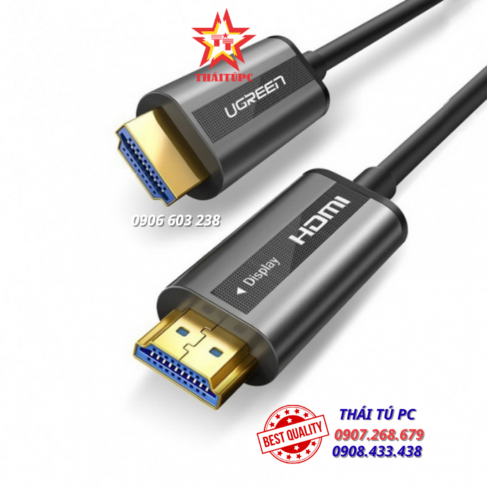 - Cáp HDMI 2.0 Sợi Quang Cao Cấp Ugreen 50222 trang bị sợi cáp bọc TPE, Đầu cắm mạ vàng chống Oxy hóa, chất lượng được cấp các chứng nhận tiêu chuẩn quốc tế như RoHS, CE và FCC. Cáp HDMI 2.0 lõi dây quang cao cấp Ugreen với các công nghệ hiện đại, thiết kế tinh tế, độ bền vượt trội là giải pháp hoàn hảo lý tưởng cho mọi công trình, dự án, nhu cầu giải trí, làm việc...