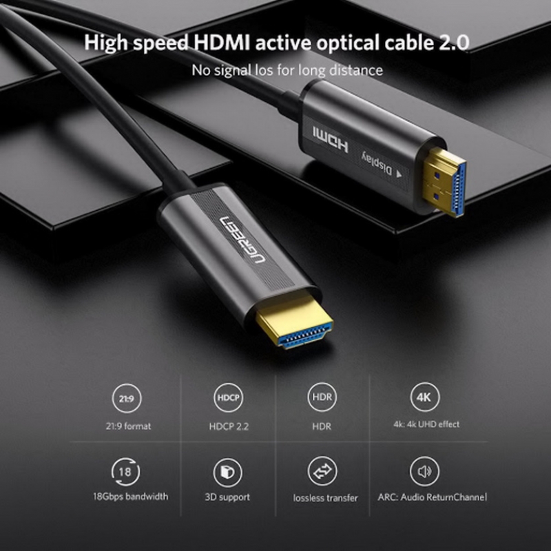 Cáp HDMI 2.0 Ugreen dài 10m 50717 một giải pháp một cáp cho nhiều nhu cầu giải trí gia đình của bạn. Sản phẩm được áp dụng để kết nối với HDTV của bạn vào thiết bị, truyền hình 3D, Roku, Boxee, Xbox360, PS3, Apple TV, Streaming Player, HD Cable Box, PC hoặc bất kỳ thiết bị HD với một đầu ra HDMI. Sau đó, bạn có thể trải nghiệm âm thanh chất lượng cao và video với độ phân giải cao từ màn chiếu của bạn.