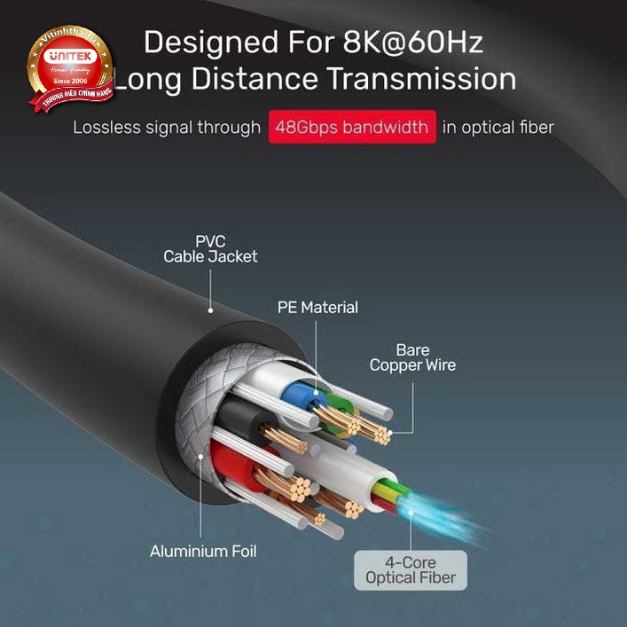Cáp HDMI 2.1 Unitek Ultrapro 50m Active Optical C11033DGY ---- 1.990.000