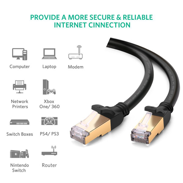 - Cable mạng bấm sẵn Ugreen 11272 là sợi cáp mạng RJ45 cao cấp giúp kết nối thiết bị của bạn với mạng internet có dây với tốc độ kết nối lên đên 10Gbps, đảm bảo hiệu xuất làm việc, lướt web, chơi game...etc. Đối với các máy chủ yêu cầu lưu lượng băng thông cực lớn.