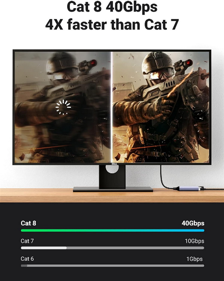 Ugreen 80429 Cáp mạng CAT8 tương thích hoàn hảo với máy tính, máy tính xách tay, modem, bộ định tuyến, PS5, PS4, PS3, X-Box 360, X-Box One, Switch, bộ chuyển mạch mạng, ADSL, bộ điều hợp mạng, hub và các thiết bị mạng khác. Nó cũng có thể tương thích ngược hoàn toàn với Cat7, Cat6e, Cat6, Cat5e, Cat5.
