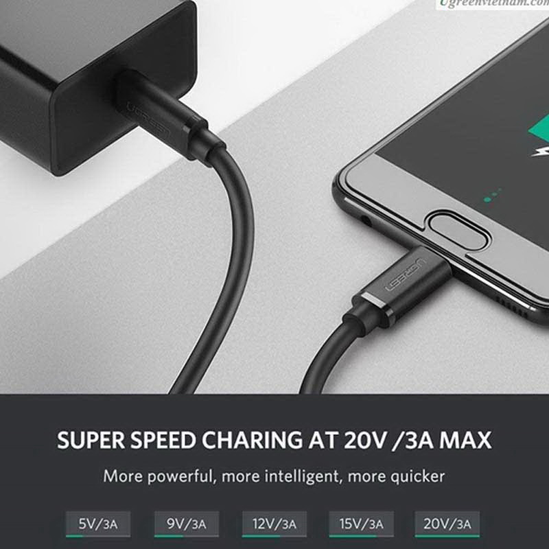 Ugreen 60788 Cáp dữ liệu USB-C sang USB 2.0 màu đen truyền dữ liệu từ máy tính ra điện thoại dài 3M US286 10060788