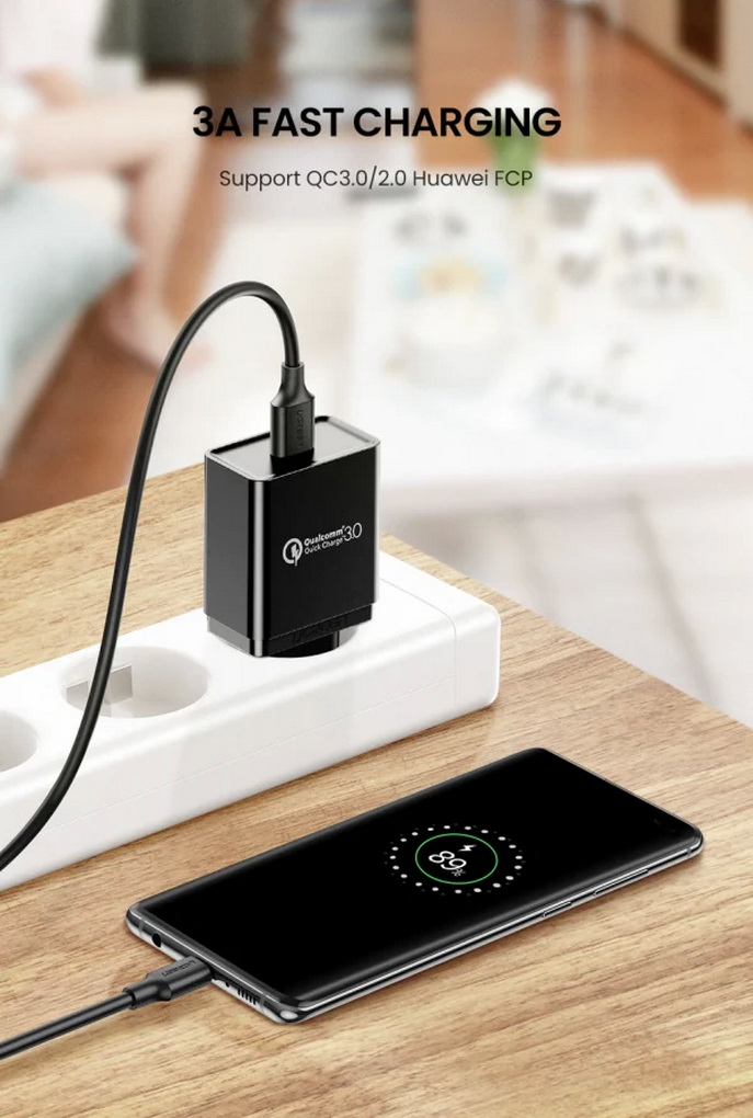 - Cáp sạc nhanh QC 3.0 USB Type C Ugreen hỗ trợ cường độ dòng điện 3A và chuẩn sạc nhanh Qualcomm 3.0, tích hợp chipset bảo vệ điện trở 56KΩ tăng cường hiệu quả sạc nhanh và bảo vệ thiết bị của bạn khỏi tình trạng nóng, ngắn mạch khi sạc. Cáp sạc nhanh 3A USB-C Ugreen tương thích với hầu hết các thiết bị như Samsung Galaxy S9, Note 8/9 USB 3.0 Loại C C 2.4A sạc Nhanh, Huawei P10 P20 Pro… (xem thêm các thiết bị tương thích sạc nhanh ảnh dưới)
