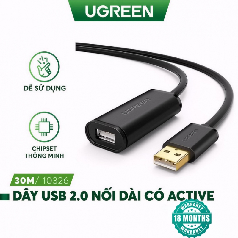 Cáp USB nối dài 30m có chíp khuếch đại chính hãng Ugreen 10326