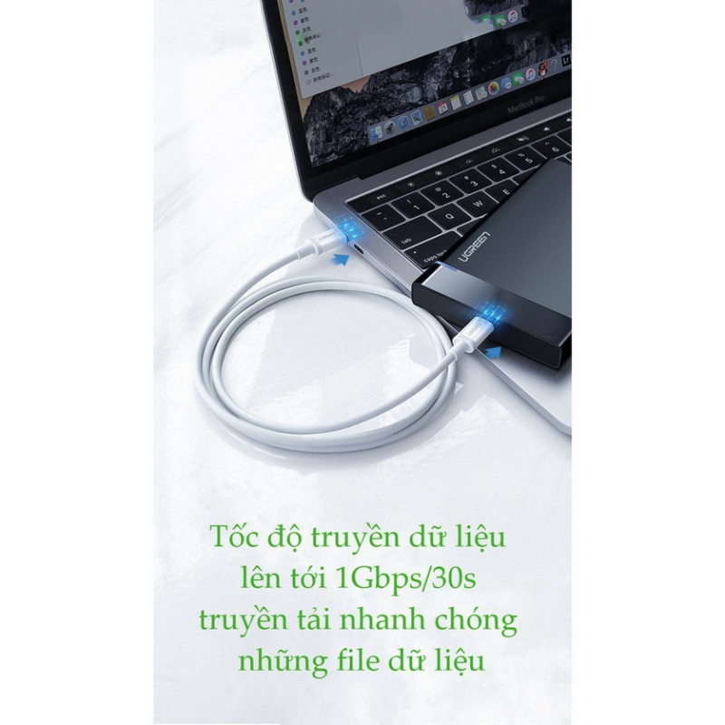 Cáp USB Type C Ugreen 60517 hỗ trợ kết nối sạc, truyền dữ liệu từ điện thoại di động, box đựng ổ cứng vào máy tính.