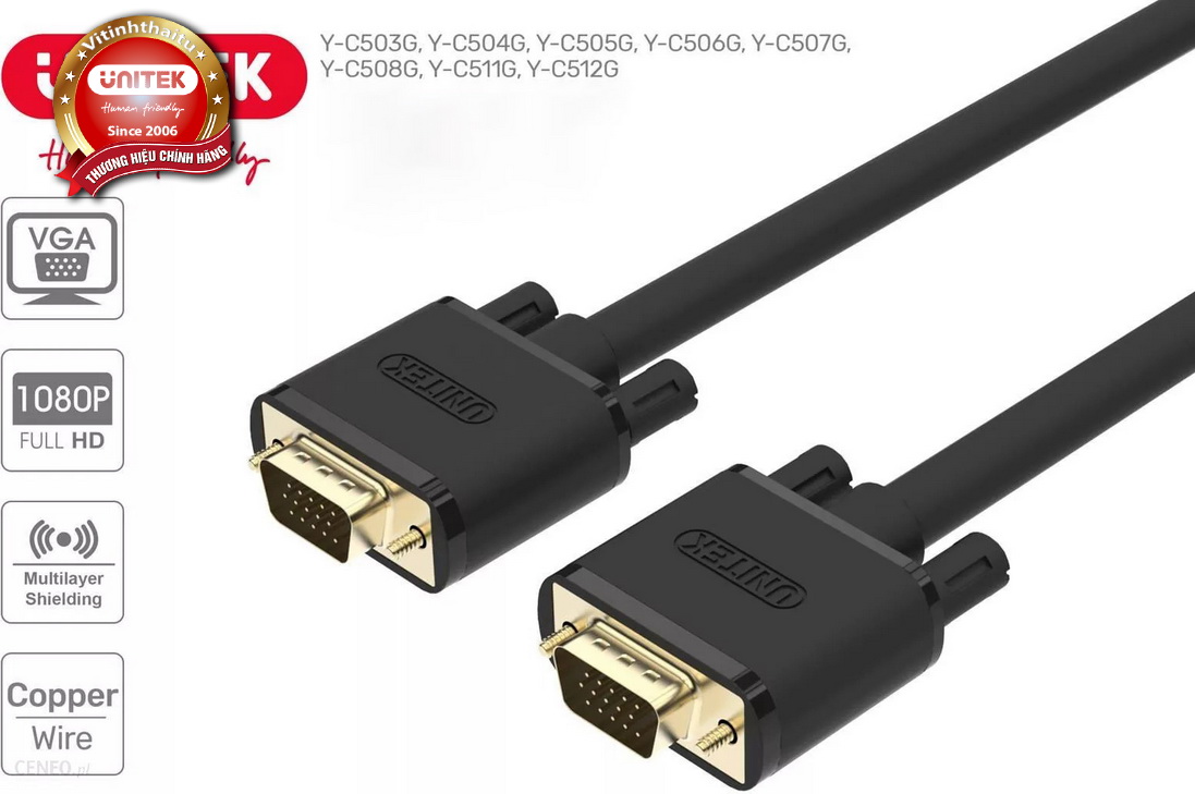 Cáp Vga Unitek dài 12 mét dùng từ Máy tính PC, Laptop sang màn hình hoặc máy chiếu. Dây vga unitek được dùng nhiều trong trường học, ngân hàng, văn phòng truyền hình yêu cầu chất lượng tốt nhất.