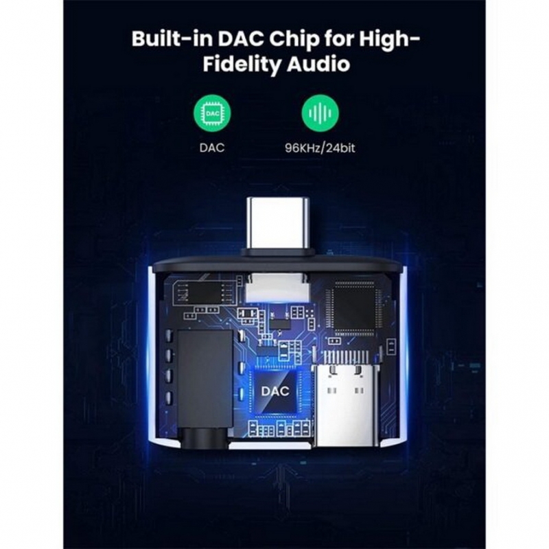 Bộ chuyển USB Type C to 3.5mm này sử dụng chip DAC (Digital to Analog Converter) chất lượng cao để đạt được đầu ra âm thanh 24bit / 96kHz và đầu vào 16bit / 48kHz giúp cải thiện tỷ lệ tín hiệu nhiễu trên nhiễu hơn 110 dB, duy trì chất lượng âm thanh gốc. Đầu chuyển đổi âm thanh giúp bạn trải nghiệm âm thanh Hi-Fi không mất dữ liệu, không tiếng ồn trong tai nghe.