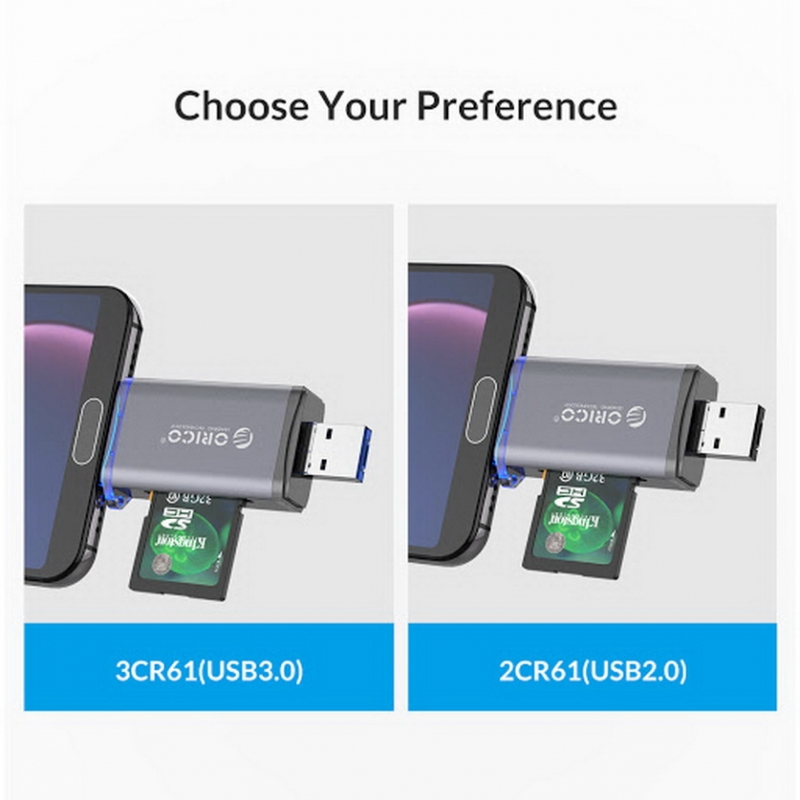 Đầu đọc thẻ nhớ đa năng TypeC - Điện thoại, Tablet, Máy tính - Orico 2CR61