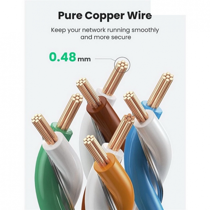 Dây cáp mạng CAT8 Ugreen 70329 cao cấp thiết kế hai đầu nối RJ45 mạ vàng 24k, phản ứng nhạy hơn. Dây đồng được bọc bằng PVC thân thiện với môi trường dày 0.8mm, bền hơn, dẻo và chống lão hóa.