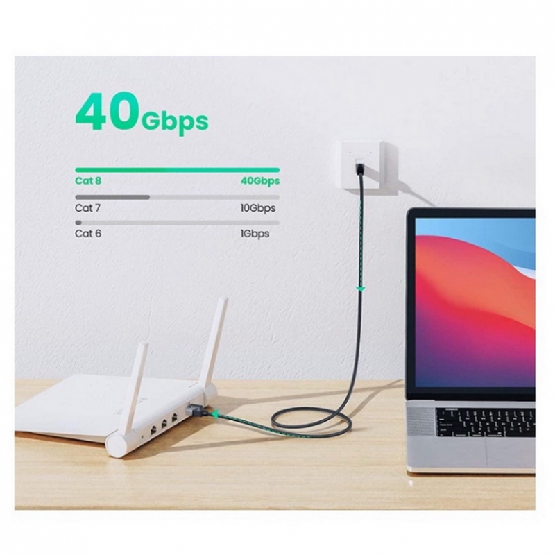 Dây, Cáp mạng Cat8 Ugreen 70329 chinh hãng hỗ trợ băng thông lên đến 2000MHz, cung cấp tốc độ mạng tối đa 25Gbps/40Gbps để bạn lướt Internet, truyền phát video, âm nhạc và các dữ liệu khác mà không gặp phải tình trạng mạng chậm phức tạp.
