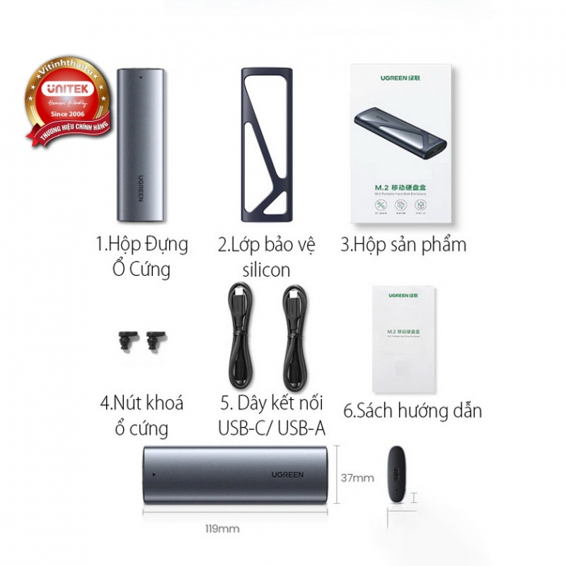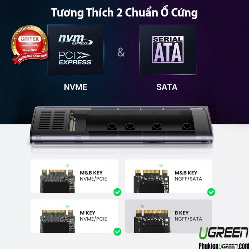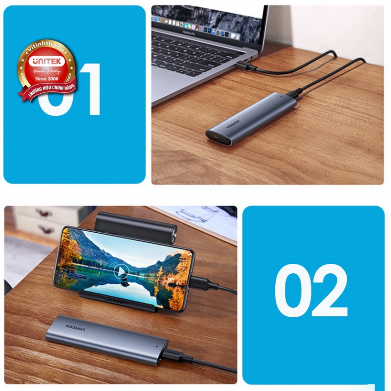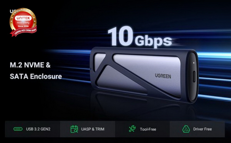HỘP ĐỰNG Ổ CỨNG SSD M.2 HỖ TRỢ NVME+SATA UGREEN 90264 TỐC ĐỘ 10GBPS