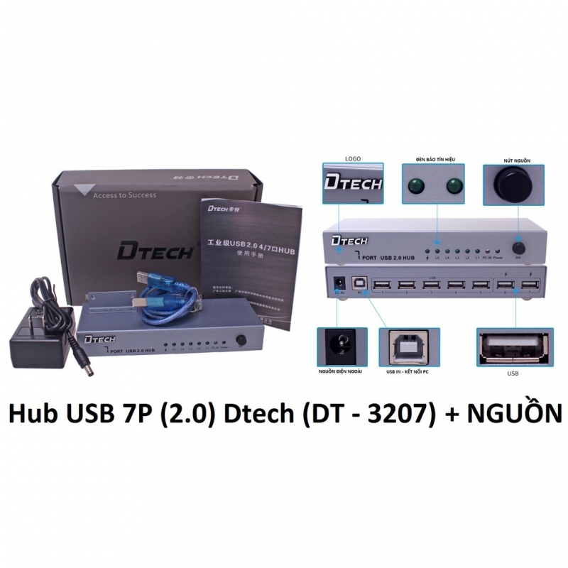 HUB USB 7P 2.0 DTECH DT 3207 Thông số kỹ thuật: Nhãn hiệu: Dtech Mô hình: DT-3207 Thuộc tính giao diện: HUB USB mở rộng Phân loại màu sắc: Màu xám đen
