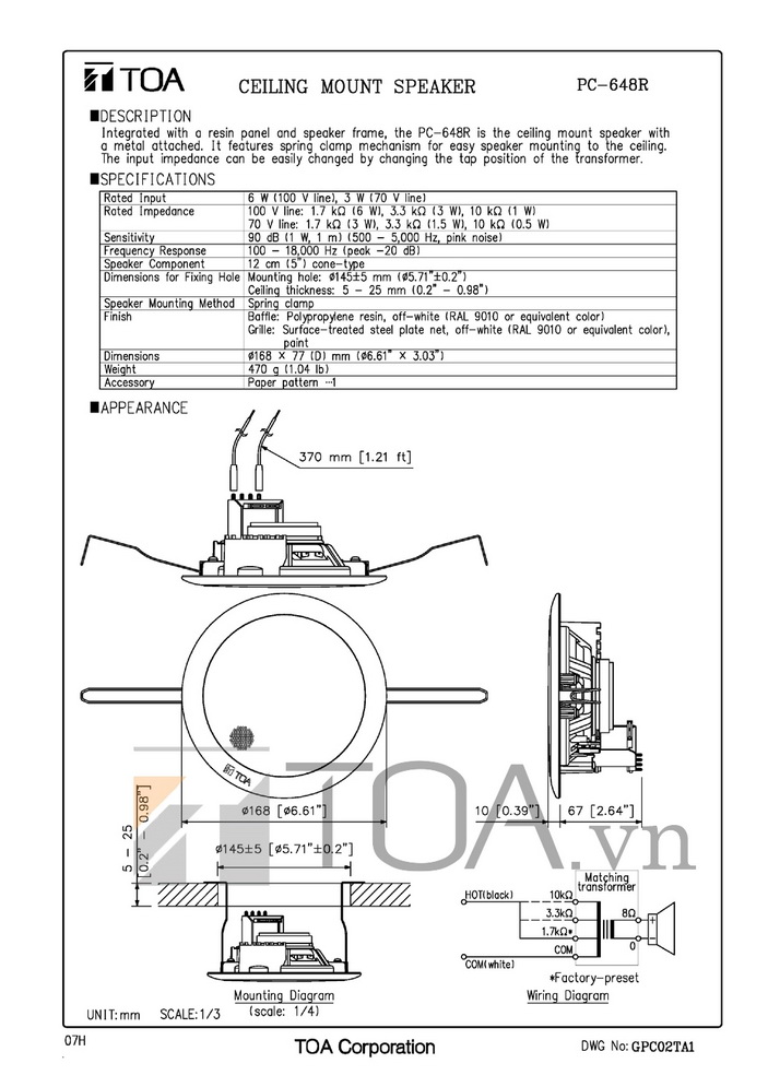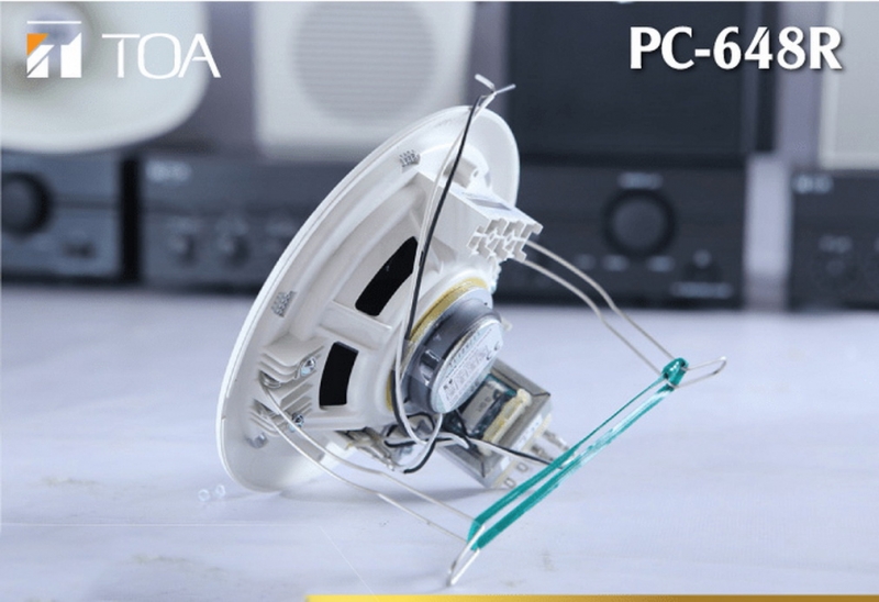 - Loa gắn trần loại móc treo TOA PC-648R được thiết kế móc treo dễ dàng lắp đặt loa lên trần